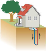 dem Prinzip der Wärmepumpe mit Erdwärme eingebaut.